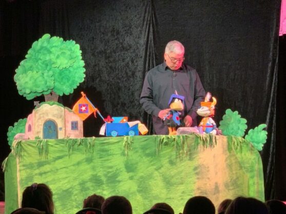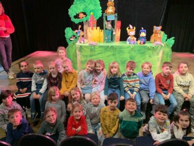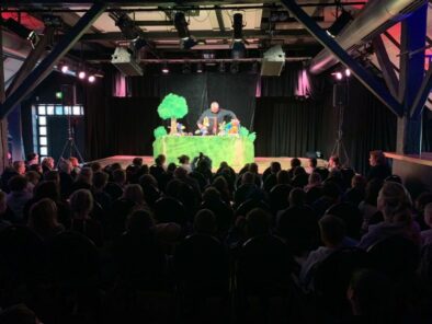 Die 1. Klassen durften am 14. März im Gulfhaus ein Figurentheater mit Rabe Socke erleben: