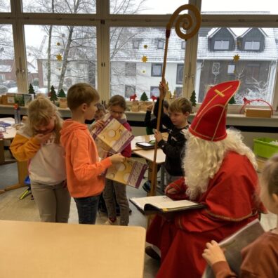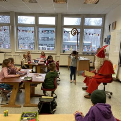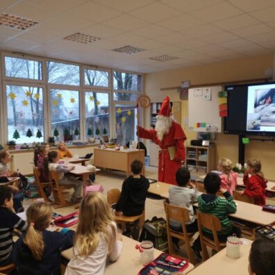 Auch in diesem Jahr kam der Nikolaus in die Marienschule und öffnete in den Klassen sein goldenes Buch.