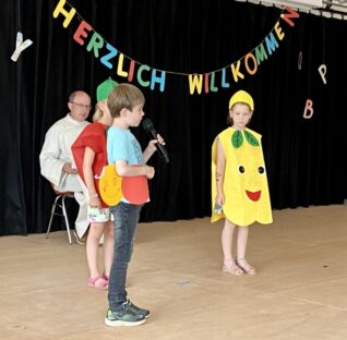 Die Zweitklässler führten für die neuen Schüler und Schülerinnen der Marienschule Oythe ein kleines Theaterstück auf (Das haben sie wirklich toll gemacht!!!).