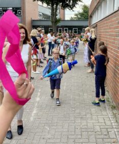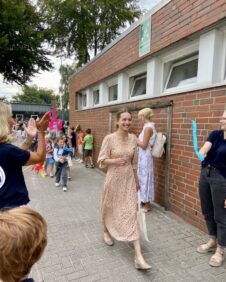 Nach dem Wortgottesdienst liefen die Schulneulinge durch eine Klatschstraße mit ihren Klassenlehrerinnen zu den Klassenräumen. Endlich hatten sie ihre erste Schulstunde.