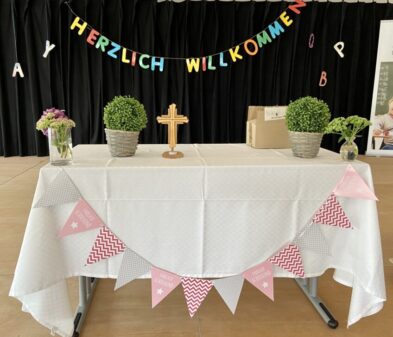 Die Einschulung startete mit einem Wortgottesdienst in der Pausenhalle der GSO.