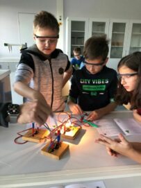 Hier konnten die Schüler und Schülerinnen neben zahlreichen chemikalischen Experimenten auch einzelne Experimente zum Thema Strom durchführen.