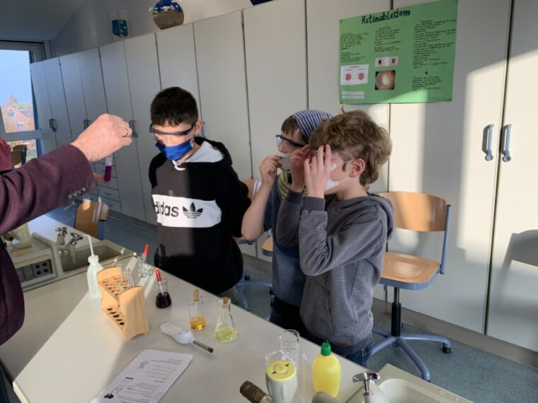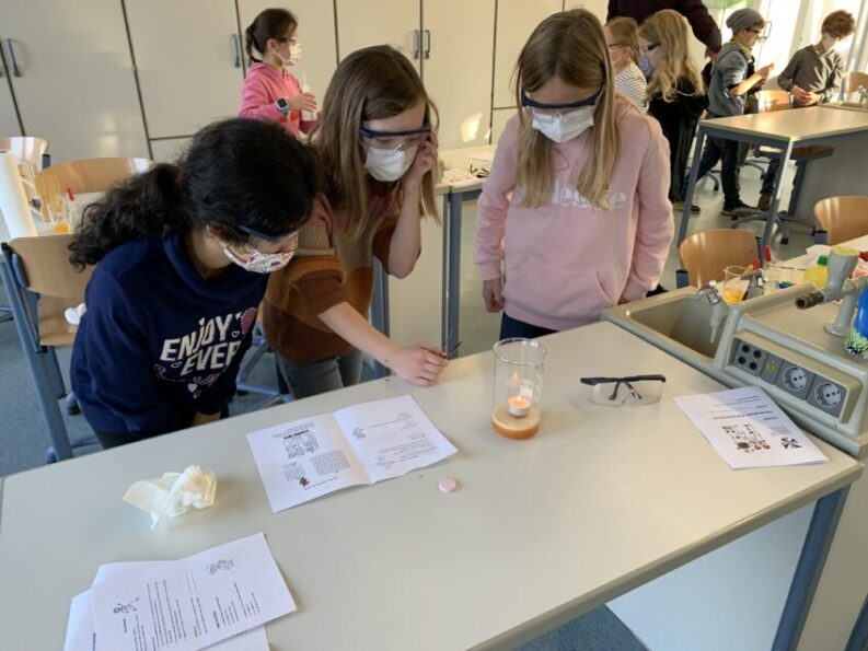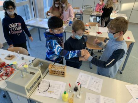 Einen Vormittag lang hatten die Kinder der Klassen 4 die Möglichkeit verschiedene Experimente selbstständig durchzuführen. Alle Schüler hatten großen Spaß und durften in Kleingruppen mit Schutzbrille und Experimentieranleitung kleine Forscher sein.
