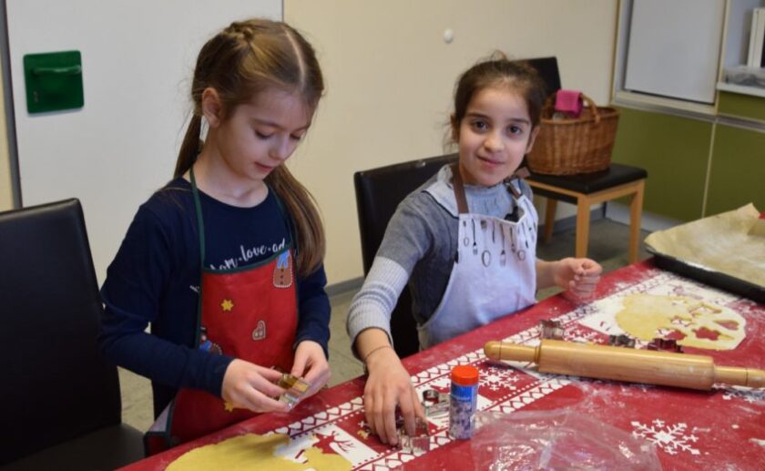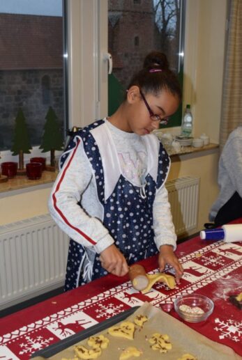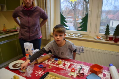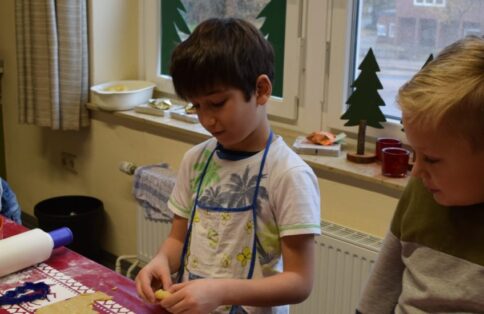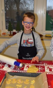 Liebe Mütter unterstützten die Kinder außerdem beim Keksebacken. Der Duft lockte natürlich auch unseren Hausmeister an, der zum Naschen kam.