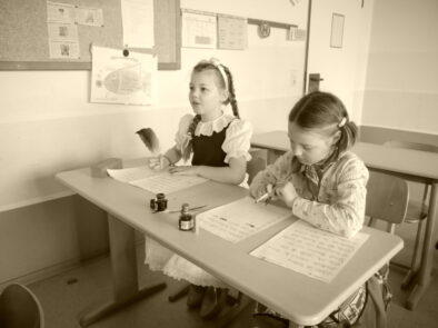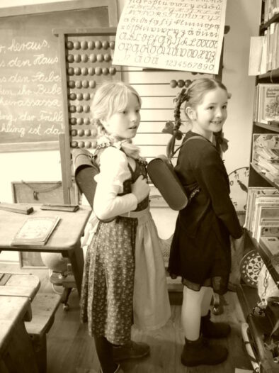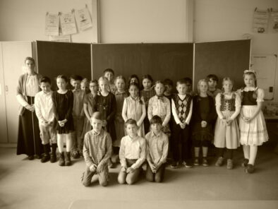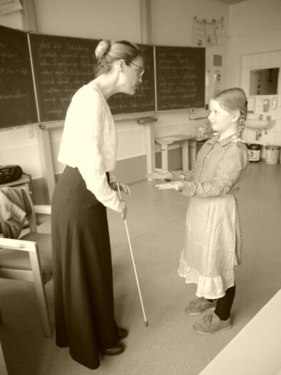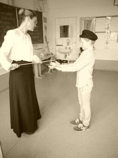 In der Sachunterrichtseinheit „Schule früher / Schule heute“ erlebten die Schülerinnen und Schüler des dritten Jahrgangs einige Unterrichtsstunden lang, wie es sich als Schulkind vor 100 Jahren anfühlte. Gerade sitzen, aufstehen, wenn man etwas gefragt wurde und das Schreiben in altdeutscher Schrift – das alles war gar nicht so leicht. Außerdem besuchten sie das alte Klassenzimmer des Heimathauses Oythe.