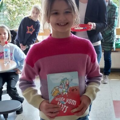 Alle haben sehr gut gelesen, sodass sich die Jury nur sehr schwer entscheiden konnte. Aenne durfte mit Frau Binder verkünden, wer gewonnen hat. Sie haben sich schließlich für Leeni Mosel entschieden. Herzlichen Glückwunsch!