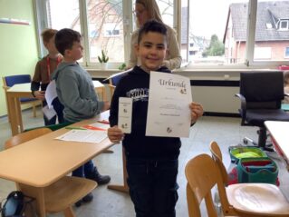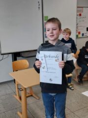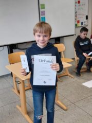 Michel: Ich war aufgeregt bei der Verleihung der Urkunde und nervös beim Vortrag. Ich habe mich aber sehr gefreut, dass ich in meiner Klasse der beste Leser geworden bin 🤩. Mein Buch hieß: Doc Maunzilius – Chaos ist die beste Medizin 📔.
